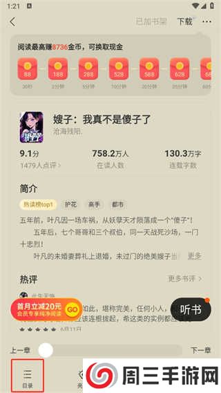 来到小说简详情页面点击【菜单】。