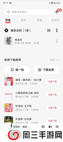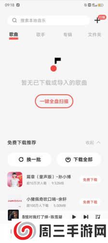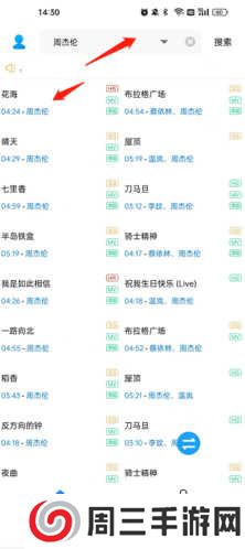 1.首先,我们打开app,会看见界面中什么内容都没有,因为这需要我们在搜索栏中输入关键词,比如说,我们输入“周杰伦”,下方就会显示周杰伦的歌曲;