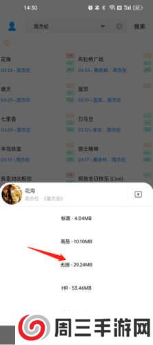 3、点击喜欢的歌,选择下载的品质,或者直接在线播放。