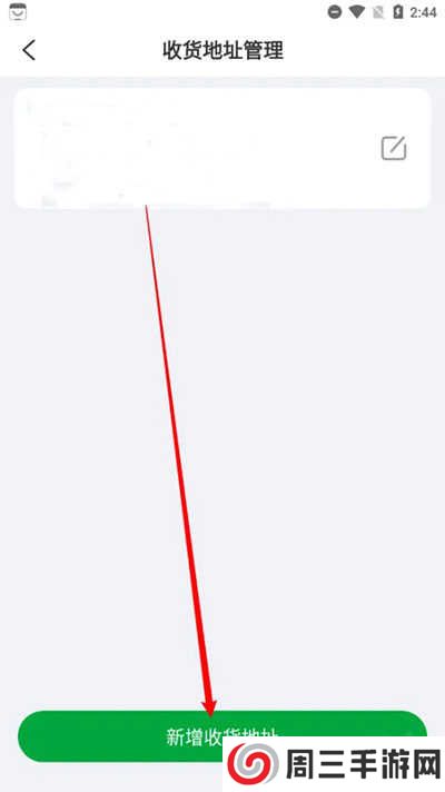 2、进入收货地址管理界面,点击【新增收货地址】。