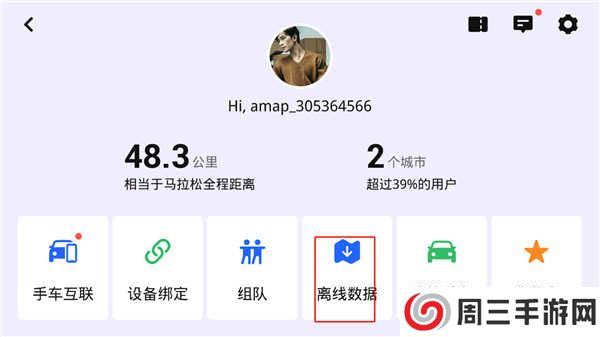 2、里面手车互联、设备绑定、组队、收藏夹等等功能,然后我们点击离线数据;