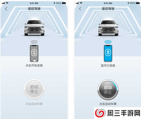 1、点击遥控驾驶,蓝牙未连接时,点击连接蓝牙;蓝牙已连接,车辆未启动时,点击启动车辆。