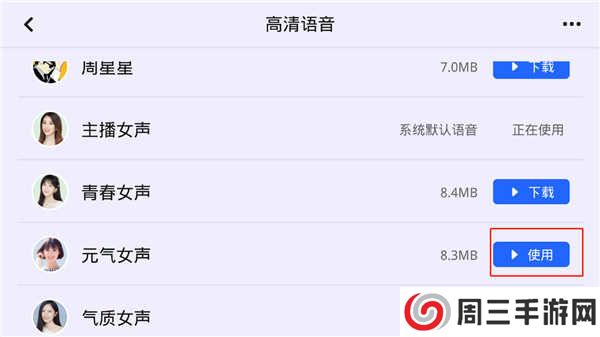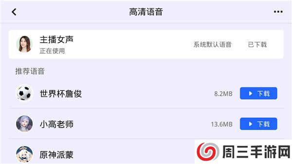 4、里面为用户提供了海量的高清语音,用户可以选择自己喜欢的语音类型点击下载;