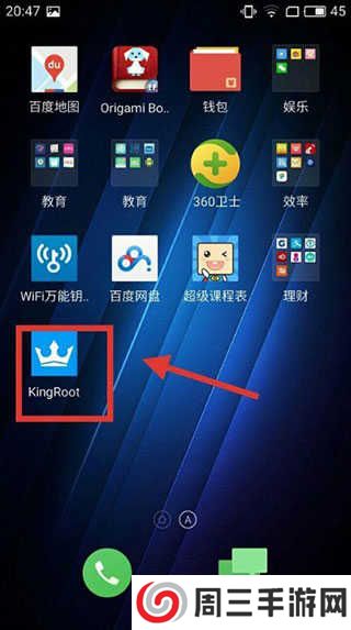 2、安装完成后,在手机桌面,点击打开Kingroot