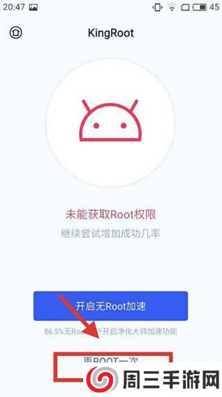 3、目前国产手机系统方案杂乱不规范,可能会出现root中途失败的情况。点击界面下方的“再Root一次”即可。若再次失败可重启手机重试;
