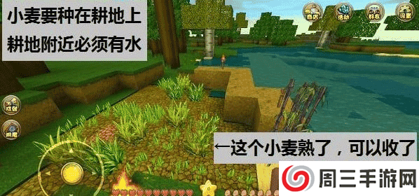 答:先做一把木锄(石锄也可),找到一片靠近水源的草地,右手拿着锄头点草地,即可变成耕地(耕地没有水会干旱)