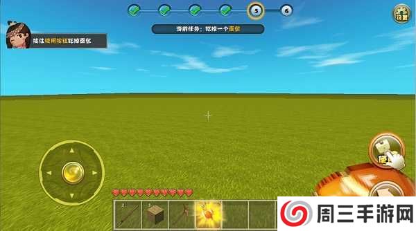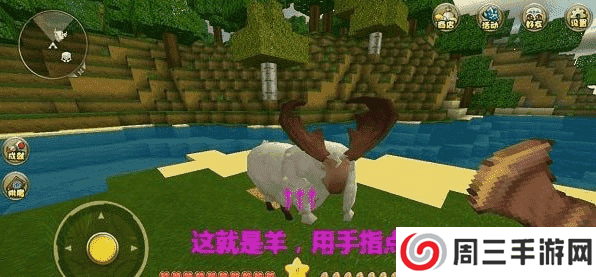 四处走走看看,不难发现羊(沙漠没有羊),让羊出现在你的屏幕里,离你比较近(如下图),用手指点它,羊受到攻击会乱跑,追上去再打一下吧!两下就灭了,捡起地上的羊毛。
