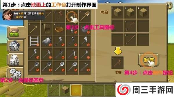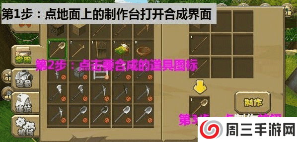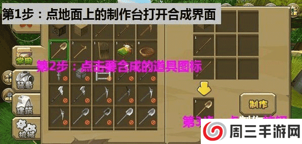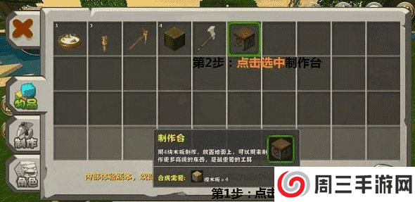 制作台在地上,再点制作台才能打开制作界面,才能合成道具