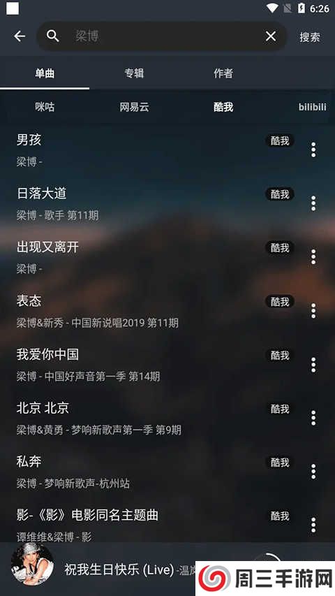 5、有了音源,再进 APP 进行音乐搜索,便可以搜索到音乐内容,搜索结果会按照不同音乐分别展示,不同音源搜索结果不完全相同。