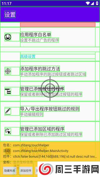 原理就是手动来确认广告所在所使用的控件,比如按钮,或者它所在的坐标位置,软件可以通过准心来精确定位。