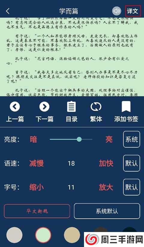 2、译文模式:白话文,所有内容都是翻译后的内容,用户无需翻译,可以直接阅读查看文章意思!