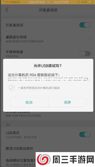 3、在设置菜单向下拉选择USB调试模式,打开开发者选项和USB调试;然后提示允许调试即可。