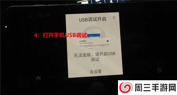 4、数据线连接手机时,弹岀选项选择ˉ传输教据“切记,如果选择传辋图片,那么投屏只有图像无声音,切记切记