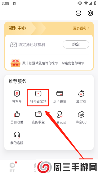 2、在“帐号百宝箱”页面,选择【帐号修复】选项,即可。