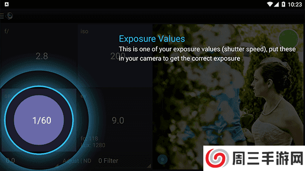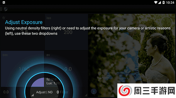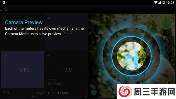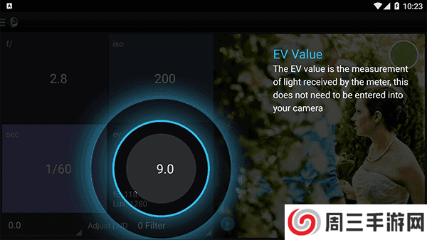 lightmeter安卓版计算曝光设置(光圈、快门速度等。)根据你安卓手机的光线传感器是摄影师必备!支持在手机上设置曝光,拍出的照片更加完美,非常适合摄影爱好者和从业者。可以帮助用户更好的设置摄影相关的曝光,让你随时根据手机测量光线,调整得到的参数,得到最佳的摄影方案!
