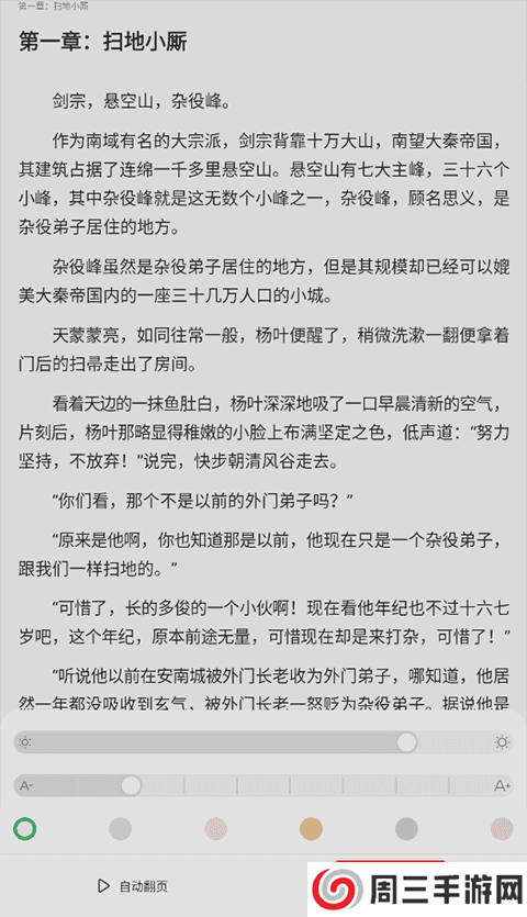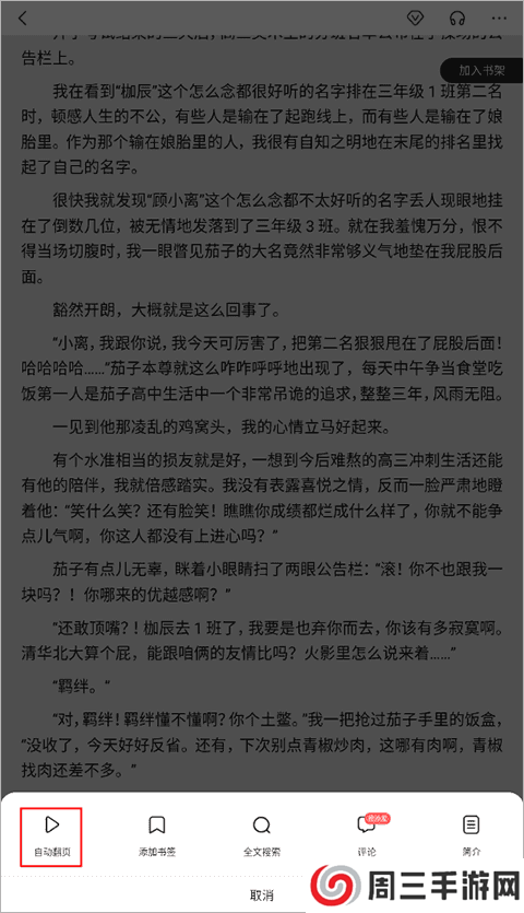 2、接着点击“自动翻页”即可进行自动阅读啦。