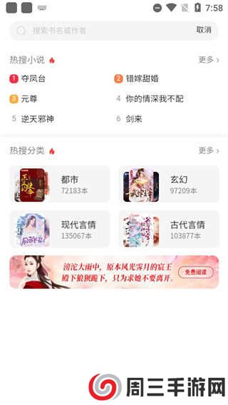 5、在首页上方的搜索栏还有小说搜索功能,输入关键字就可得到自己想要的结果。
