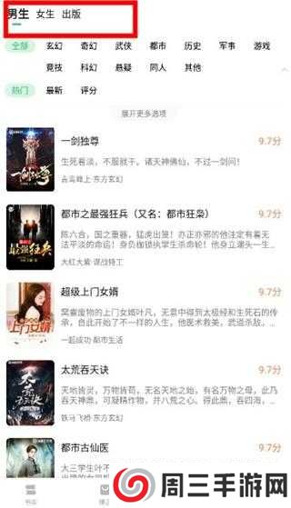 6、分类功能中提供了玄幻、奇侠、武侠、都市、历史等多种题材类别,还贴心的氛围男生、女生及出版分类,能很好地满足不同读者的需求。