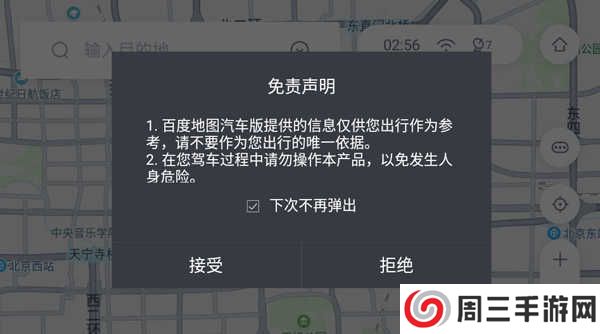1、在本站下载安装百度地图汽车版,运行软件,点击接受;