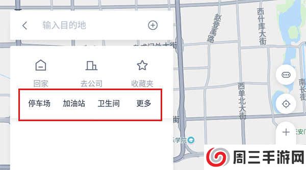 2、输入目的地,可以查看最近的停车场、加油站、卫生间等;
