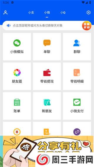 打开刷圈兔后,点击“小微模拟”,这个就是模拟微信聊天;