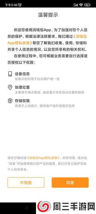 1、在本站下载安装华润银行润钱包app,运行软件,同意协议;