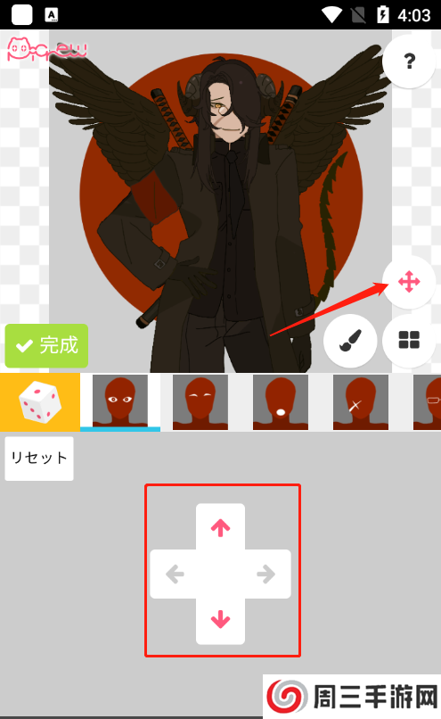 3、点击这个按钮,还可以对部位进行移动,比如说眼睛,点击下方的上下左右箭头即可进行移动;