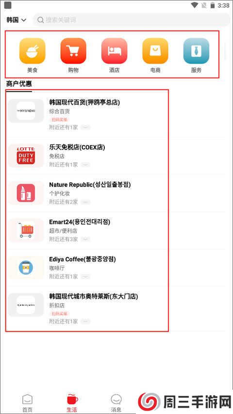4、而生活板块中会有当地的美食、购物、酒店,还有很多的商户优惠等你来拿。