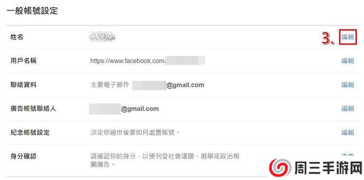 在一般帐号设定的区块,点选姓名右边的「编辑」。