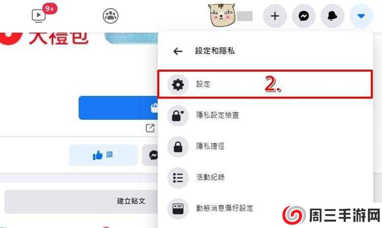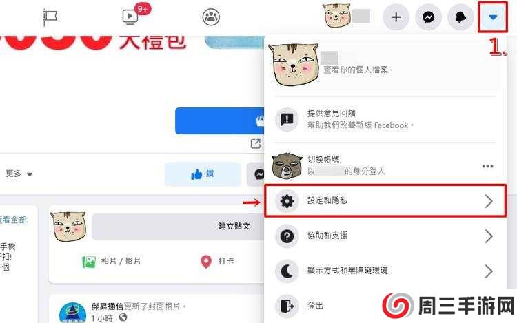 请先前往电脑网页版的Facebook页面,点选右上方的「倒三角形」,按下「设定和隐私」>「设定」。