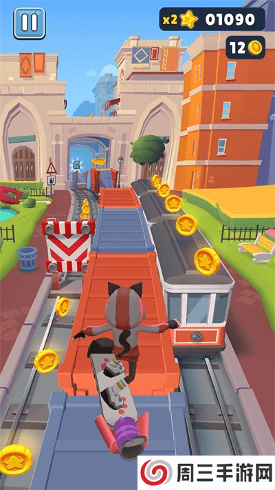 2. 操作方式:玩家通过左右滑动屏幕控制角色移动,上滑跳跃,下滑翻滚,双击屏幕激活滑板,以躲避障碍和追捕。