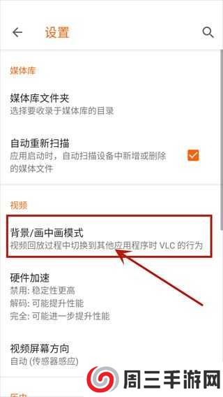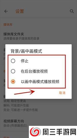 2、进入设置界面后选择“背景/画中画模式”,如下图所示。