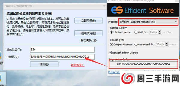 8、运行包中的注册机,激活产品这里选择【Efficient Password Manager Pro】将获取的注册码填写到软件。