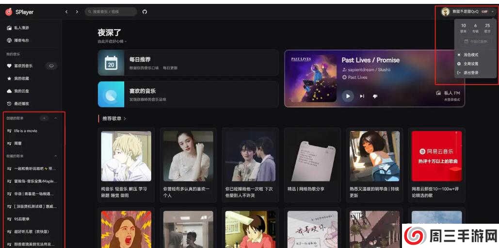 同时右上角可以登陆,等了后会同步你的信息,包括会员信息、你的歌单、收藏专辑以及歌手都有的。不同于其他的项目,该项目能直接同步歌单,这就意味着不需要再去创建歌单或者搜索歌曲听了。