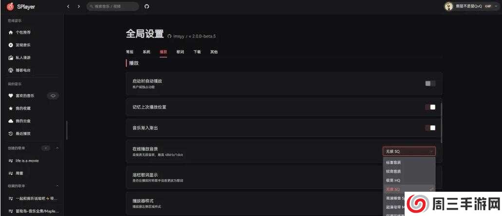 除此之外,该项目的设置项也蛮多的,登录自动签到、侧边栏以及音质选择等等都有的。当然了,音质选择上还是需要你本身已经是会员,该项目并不具备解锁会员内容的功能,不过可以解锁一些灰掉的音乐,也挺不错。