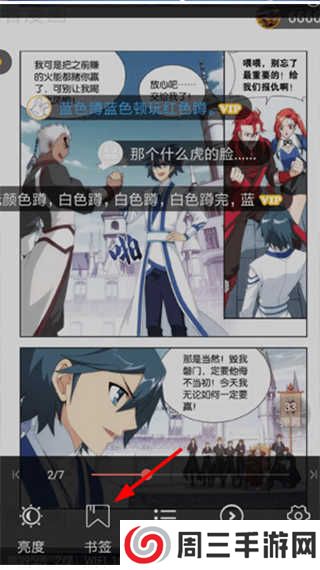 2、然后点击漫画阅读页面屏幕中央,唤起菜单列表并选择下方的“书签”功能,这样就能使用右下角的“+”按钮添加书签了;