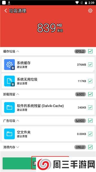 2、它就会为用户自动搜索出手机里的无用*,点击清理*;