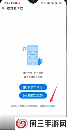 4、如果对方没有安装酷狗音乐,请使用蓝牙传歌,