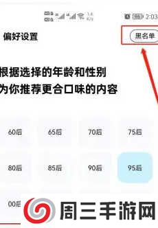 4、在弹出“偏好设置”界面,选择右上角的“黑名单”;