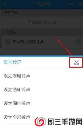 4、点击【选择铃声】旁的【剪刀】标志