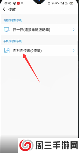 3、接着选择“面对面传歌”,扫一扫对方的二维码即可传歌,