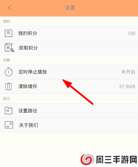 3、而且通过主页右上角的“设置”选项,大家还可以从功能列表里设置“定时停止播放”,方便那些喜欢在睡前收听日剧广播的朋友。