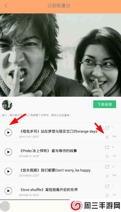 2、从中搜索找到感兴趣的日剧广播后,可以直接点击进行播放,或者通过右侧的下载按钮保存到日后收听。日剧tv的具体使用图文讲解截图