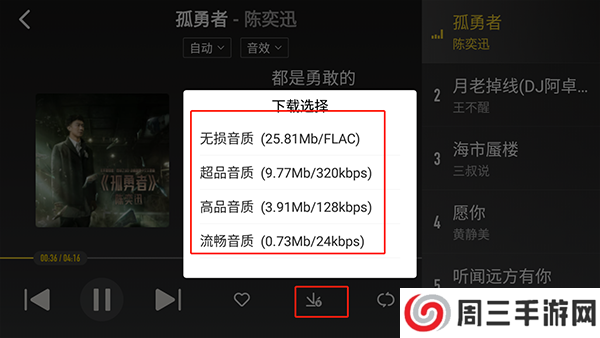 4、还能点击下载选择音质,且全免费下载