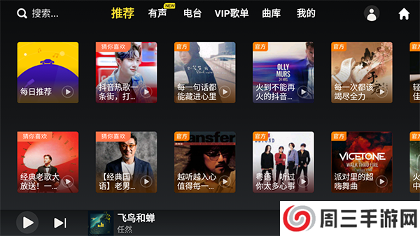 4、进入首页即可随机听音乐;