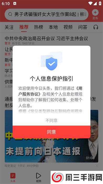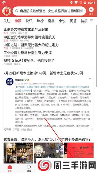 2.在软件的首页可以看到推荐的新闻资讯和热门的资讯信息等;