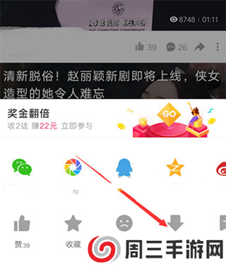 4、分享视频赚金币,这个也很简单,看到好的视频,分享到微信或朋友圈等,你就可以得到金币,每天可分享三次金币视频,每次60金币。