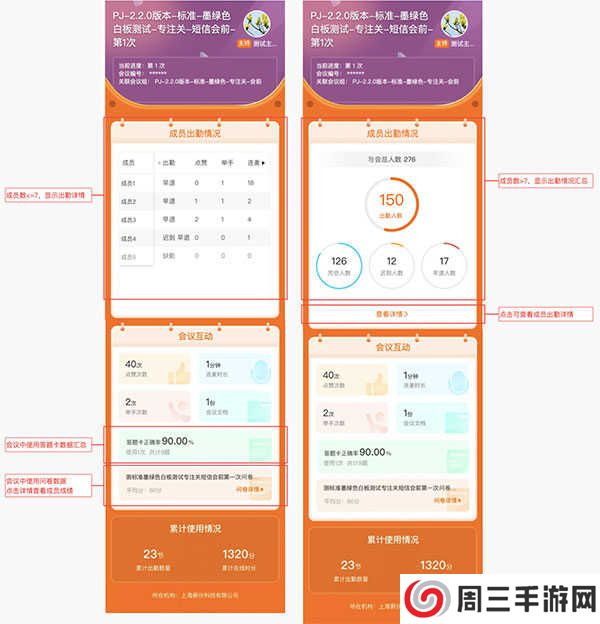 会议成员可见。记录该成员在本次会议的互动情况、会议足迹等。如该会议主持未出席、或该成员未出席,则此次会议无成员会议记录。