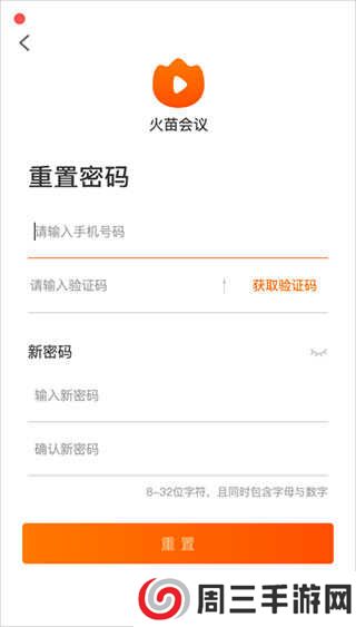 在账号登录页面,点击可进入重置密码。密码需为8-32位字符,且同时包含字母与数字。