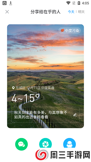 3、可以将天气信息分享到微信朋友圈,让更多的好友可以及时的知道降温信息;